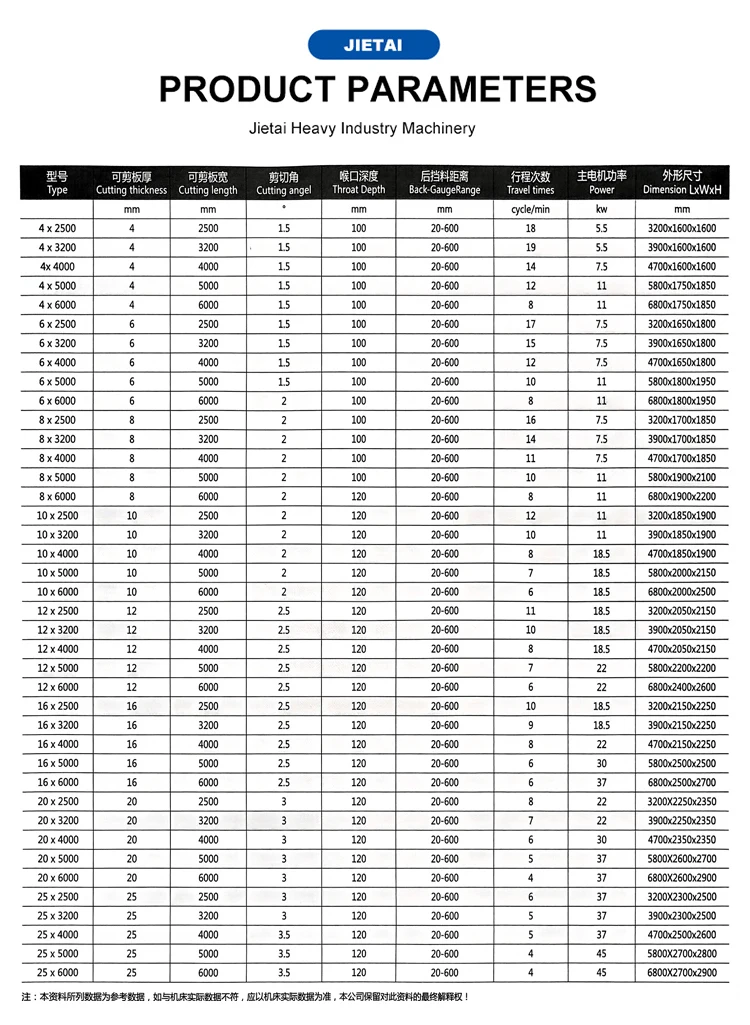 Core Structure Hydraulic System: Composed of a hydraulic pump. hydraulic cylinder. control valve group. etc.. it provides power for the equipment. featuring stable operation and uniform shearing force output.- Swing-type Tool Post: The tool post swings around a fixed axis (similar to "scissors opening and closing"). The blade is installed at an angle. and during shearing. it makes diagonal contact with the plate. reducing shearing resistance and minimizing plate deformation.- Workbench and Material Stopper: The workbench surface is equipped with a wear-resistant pad to protect the plate and the workbench surface. The material stopper can be adjusted manually or electrically to accurately control the shearing size.- Safety Protection: Standard configurations include hand guards and emergency stop buttons; some models are equipped with photoelectric protection to prevent safety accidents during operation.