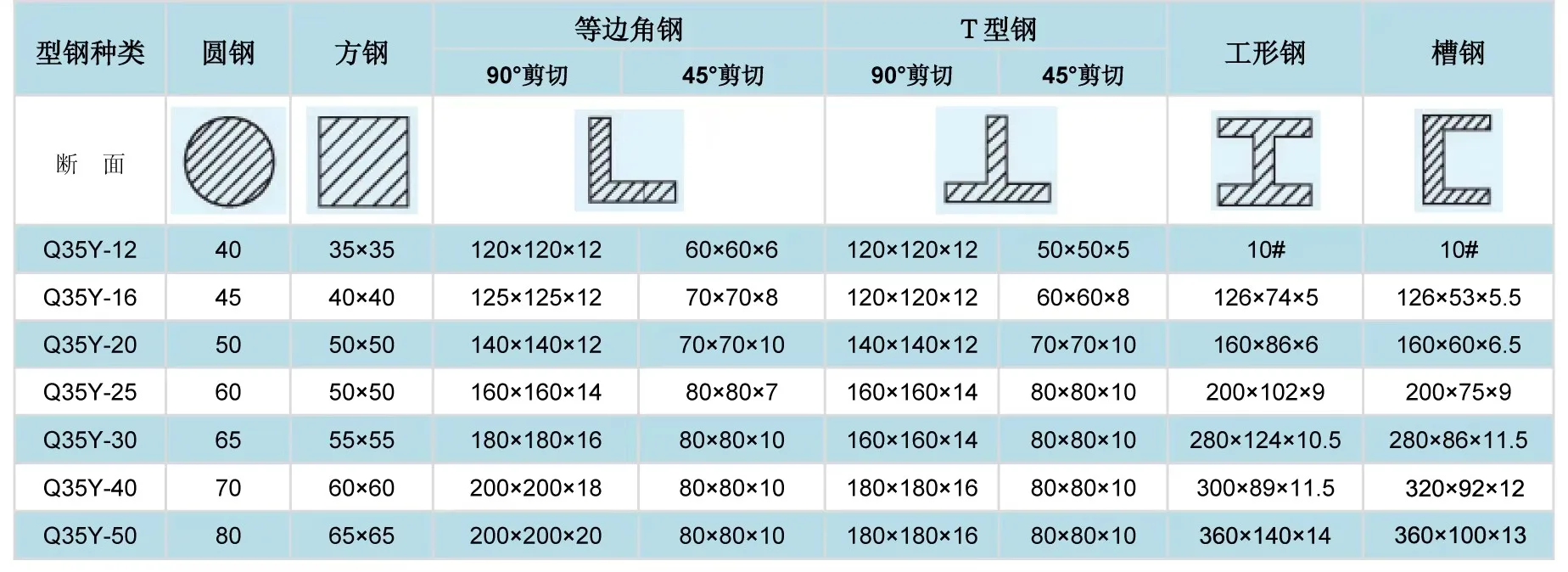 Types of shearable profiles | Round steel. square steel. channel steel. angle steel. T-steel |
