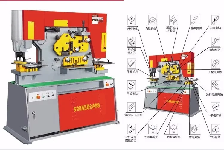 Core Functions (The Essence of "Combined")– Punching: Creates circular. square. and special-shaped holes (e.g.. bolt holes for steel structures) on profiles such as steel plates. angle steels. and channel steels.- Shearing: Cuts flat steel plates. profiles (including angle steels/channel steels). and bar materials (such as round steels/square steels).- Auxiliary Functions: Some models also support simple edge folding (bending of steel plates) and die shearing (cutting specific shapes by replacing dies).