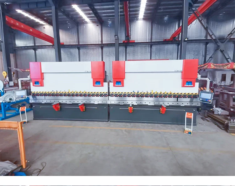 Core Advantages1. Breaking Through Processing Size Limitations: The maximum bending length of a single electro-hydraulic bending machine is usually ≤ 6m. while dual-machine linkage can realize the bending of extra-wide plates with a length of 8m-20m. It solves the pain point that large structural parts "cannot be bent as a whole" and avoids precision errors caused by splicing after segmental bending of workpieces.2. High Synchronization Precision and Bending Quality: Through real-time detection and automatic compensation. the slider synchronization precision of dual-machine linkage can reach ±0.05mm. and the consistency error of bending angles is ≤ 0.5°. which is far better than the processing precision of manually coordinated two machines. It ensures that there are no problems such as "side bending" and "angle deviation" after the integral bending forming of extra-wide workpieces.3. Improving Processing Efficiency and Safety: Compared with the traditional process of "segmental bending + splicing". dual-machine linkage can realize "one-time bending forming" of extra-wide workpieces. improving processing efficiency by 30%-50%. At the same time. the workpiece does not need to be handled or flipped multiple times. reducing manual intervention and lowering the safety risks during the handling of large plates.4. Flexible Adaptation to Multi-Scenario Requirements: The linkage system supports two modes: "dual-machine synchronous bending" and "one-side independent bending" (subject to workpiece adaptation). When processing plates of conventional width. the linkage can be disconnected. and the two machines can be restored to independent operation. improving equipment utilization and adapting to the production needs of workpieces of different specifications.