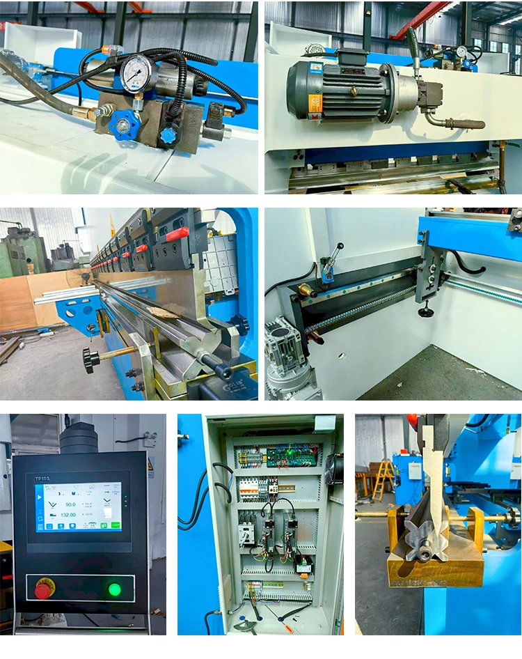 It adopts a combined drive of "hydraulic transmission + double servo motors" and is equipped with a professional CNC system (such as the common TP series. DA series. etc.). It can adjust the bending speed. pressure and angle in real time. and accurately control the bending error (usually within ±0.1°). meeting the needs of high-precision processing.